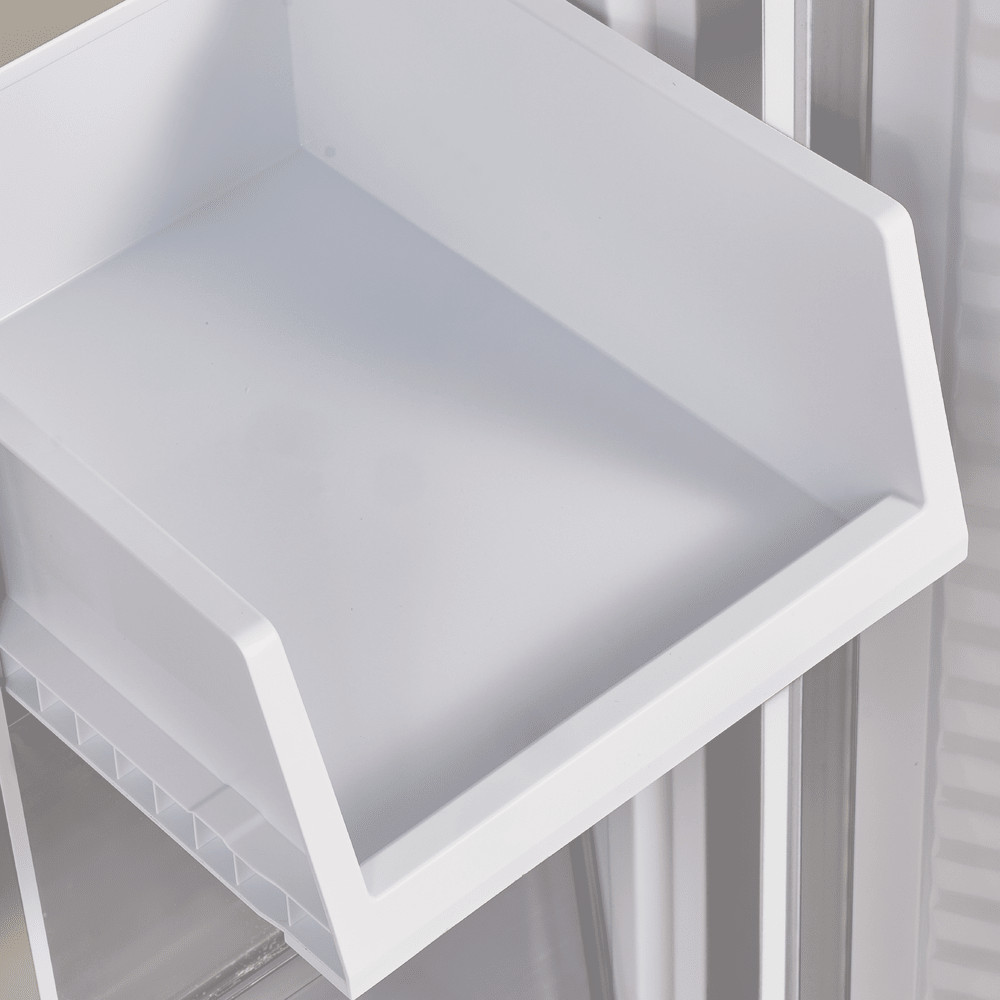 Корпус высотой 183 см имеет ширину 78,5 см и сделан из металла. Две верхние и две нижние двери укомплектованы фасадами из полированного металла. Внутренняя часть выполнена из антибактериального белого пластика легкой очистки.