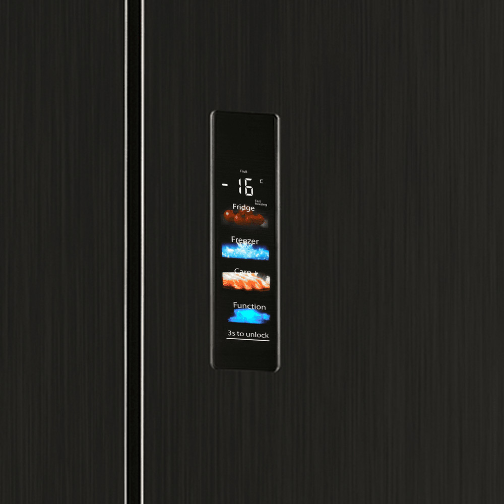 Благодаря LED-дисплею и управлению на дверце, можно не открывать холодильник для смены настроек. Внутрь не попадает тёплый воздух — лучше сохранность продуктов и меньше расход электроэнергии