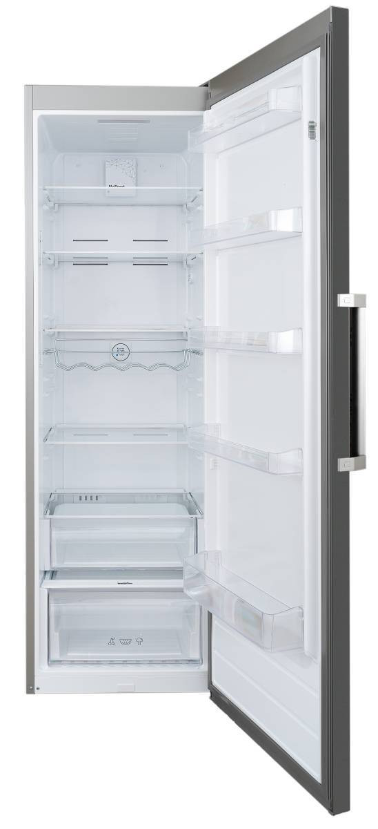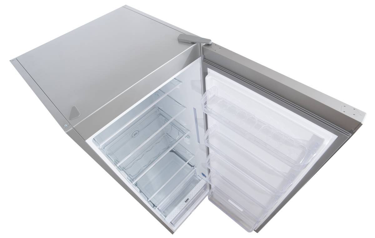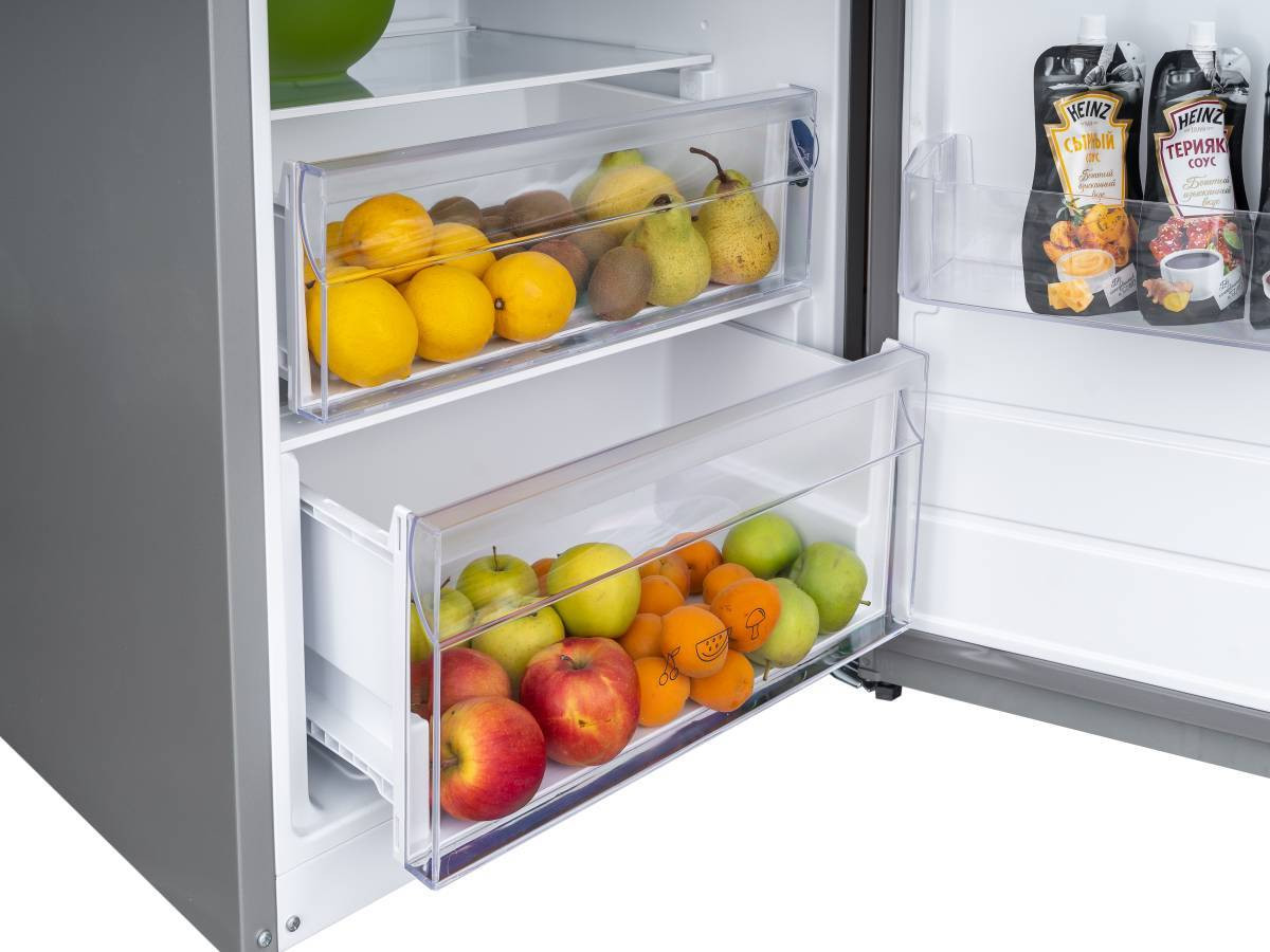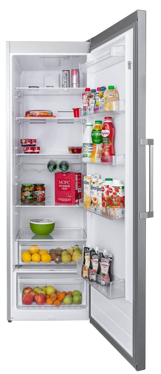 Угол открытия дверей холодильника 120°, ящики и полки полностью вынимаются из холодильника, дверца не мешает