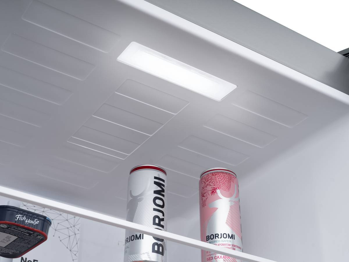 С удобным LED освещением сверху и сбоку будет легко найти продукты в любой части холодильника