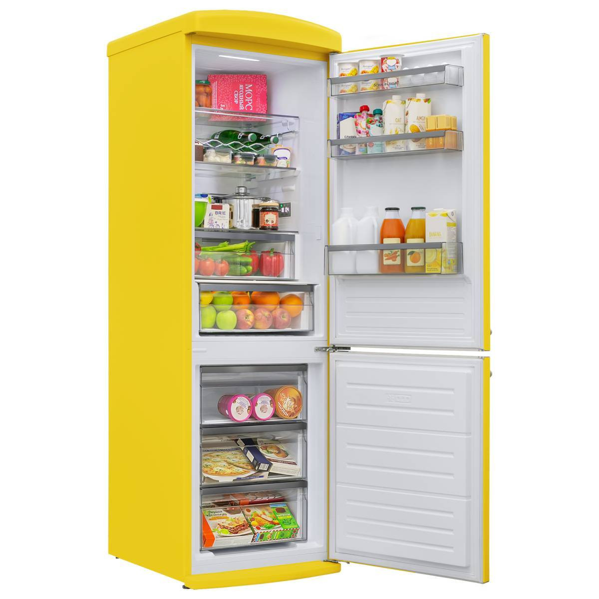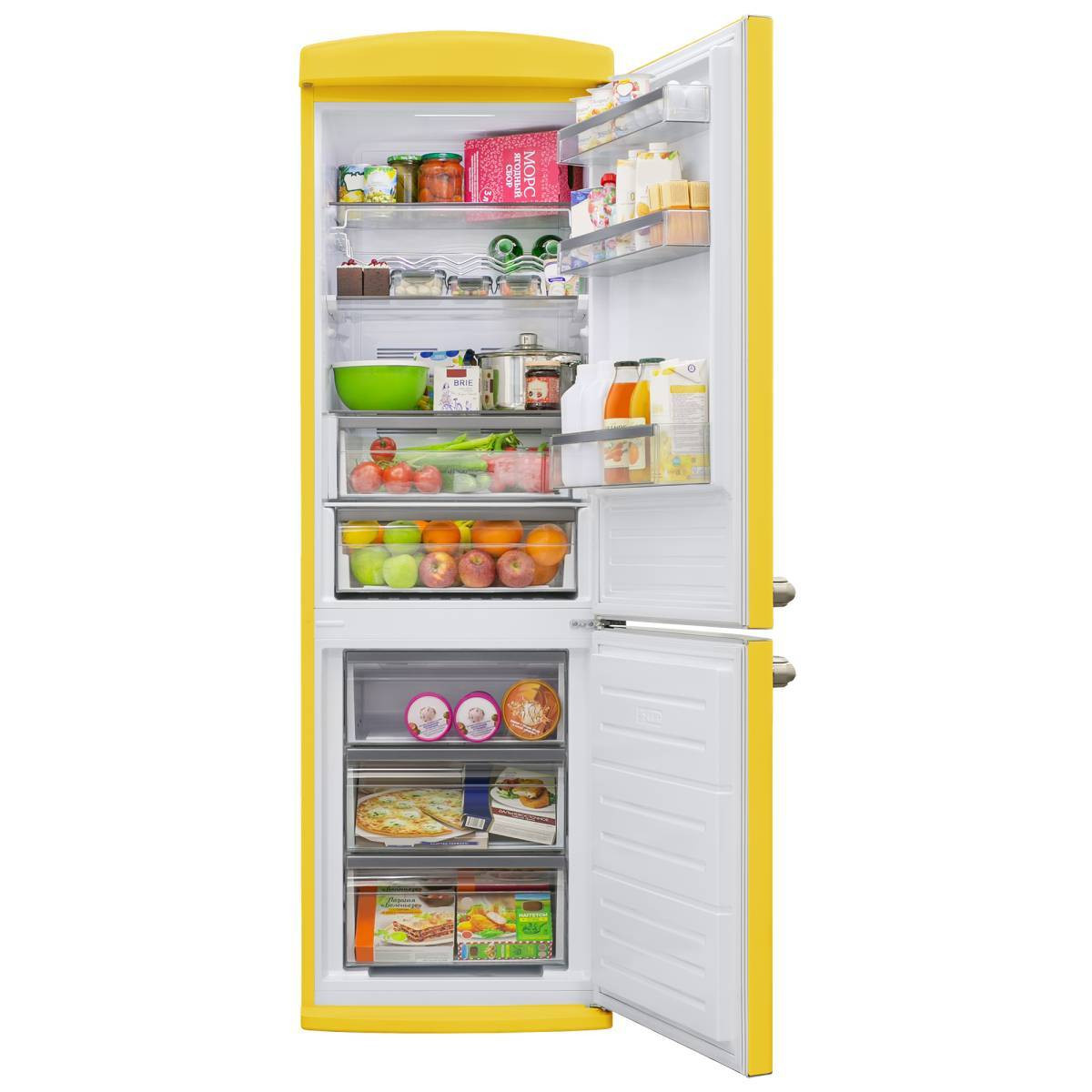 Объем холодильной камеры составляет 237 литров, а морозильной – 94 литра. Холодильник оснащен тремя полками из закаленного стекла, одна из которых складная, ящиками для фруктов и овощей внутри холодильной камеры, а также тремя ящиками для продуктов в морозильной камере. Помимо этого в холодильном отделении есть 3 полки на дверце. Все это позволит вам удобно располагать продукты и легко находить нужные.