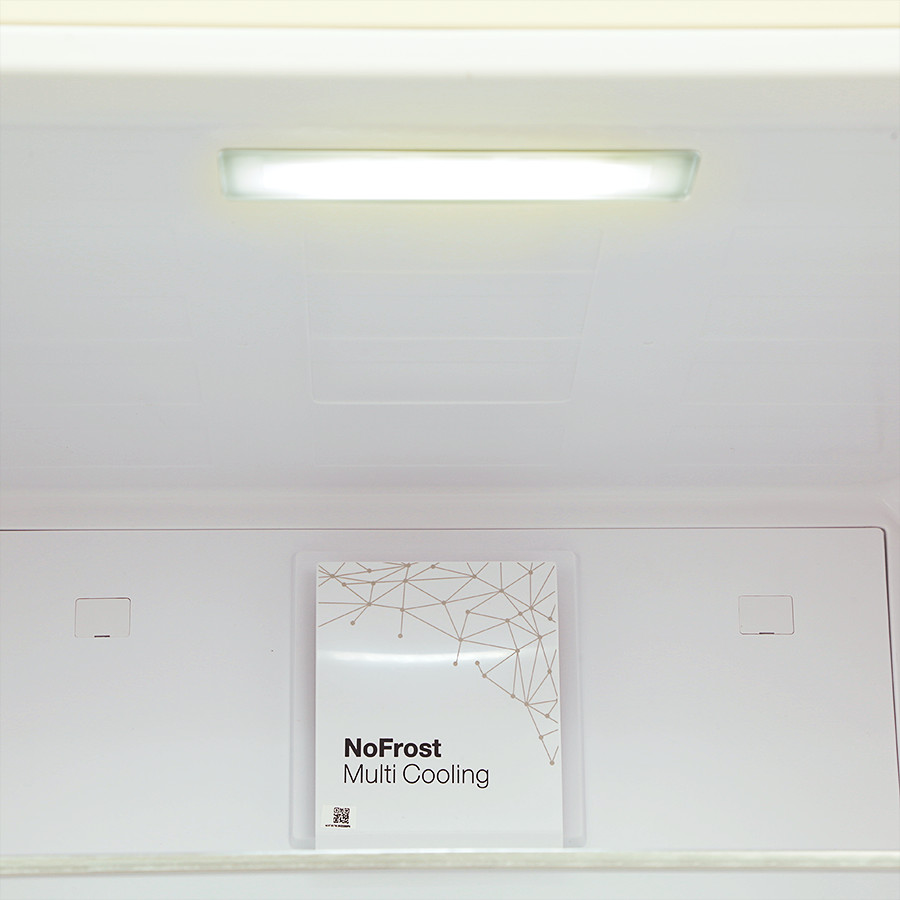 За счет принудительной конвекции система эффективно препятствует образованию наледи на внутренних стенках. Данная система защищает от высыхания и в ней полностью отсутствует передача запахов между холодильником и морозильной камерой.