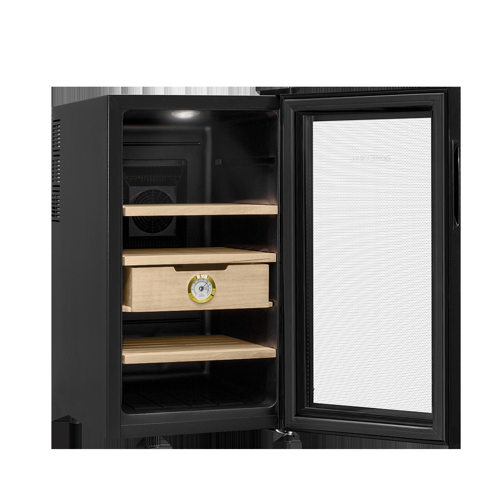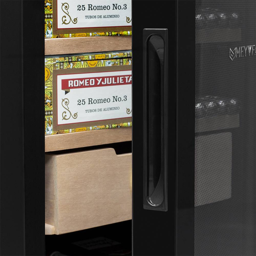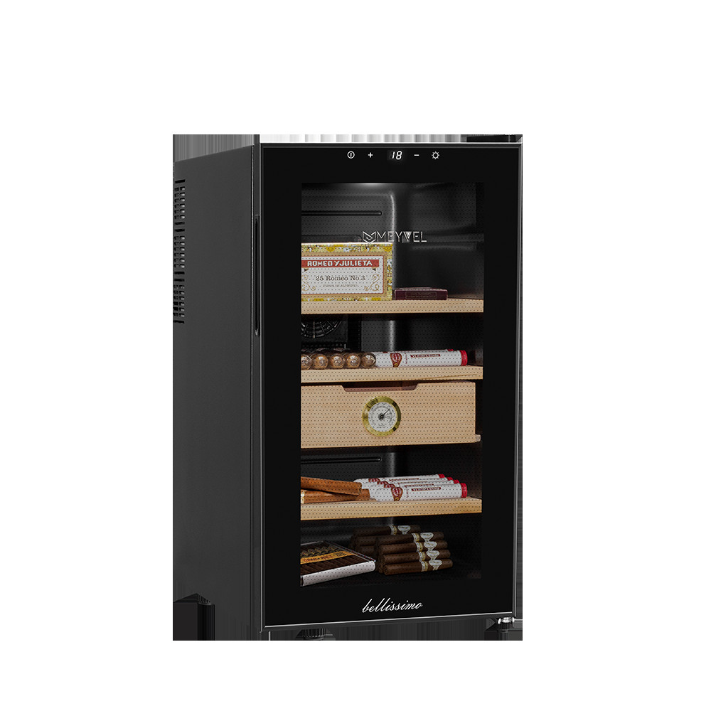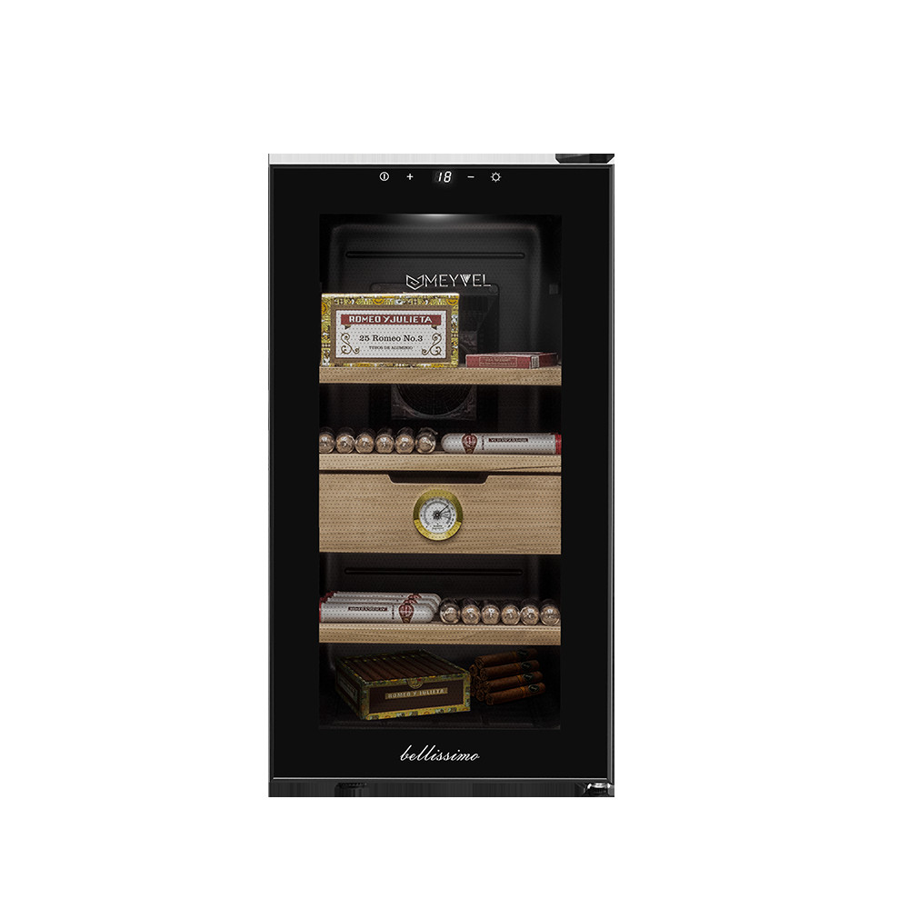 В ящике хьюмидора Meyvel MC-48BT встроен гигрометр, с помощью которого удобно отслеживать уровень влажности. Панель управления с электронным дисплеем позволит настроить необходимую температуру в диапазоне от +10C° до +18C°, включить или отключить внутреннее освещение. Уровень шума не превышает 39дБ.