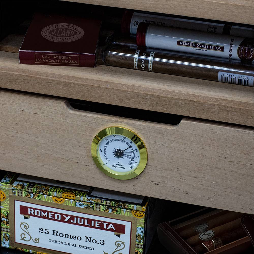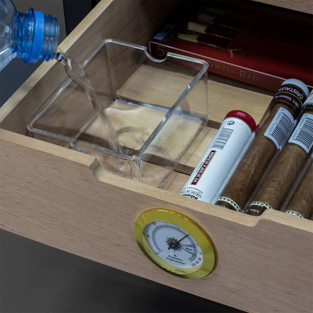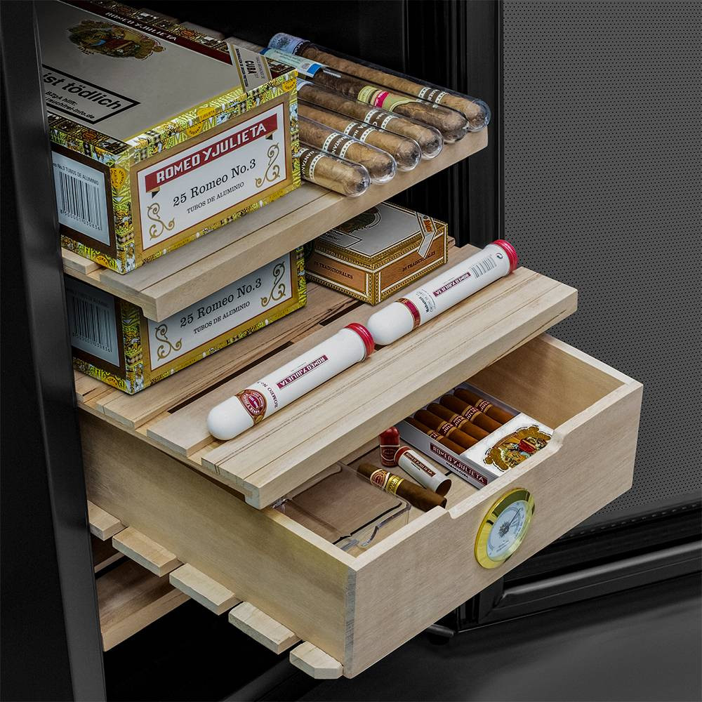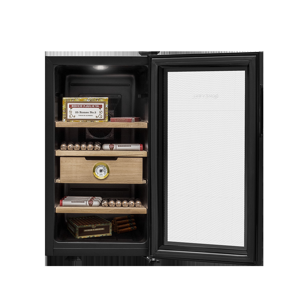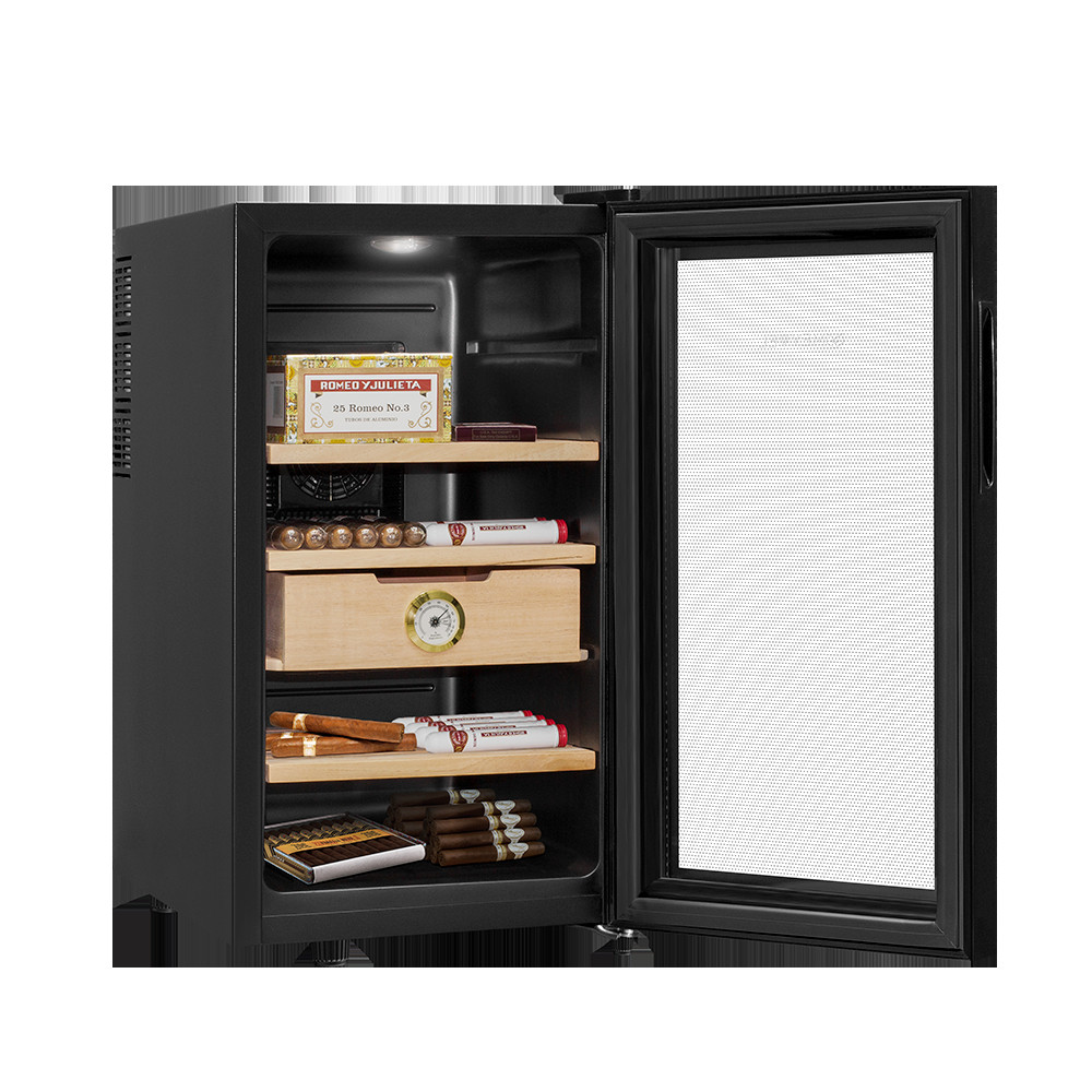 В ящике хьюмидора Meyvel MC-48BT встроен гигрометр, с помощью которого удобно отслеживать уровень влажности. Панель управления с электронным дисплеем позволит настроить необходимую температуру в диапазоне от +10C° до +18C°, включить или отключить внутреннее освещение. Уровень шума не превышает 39дБ.