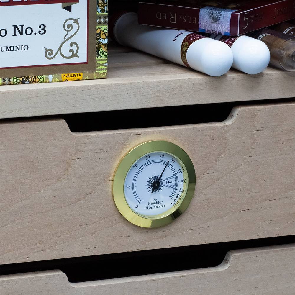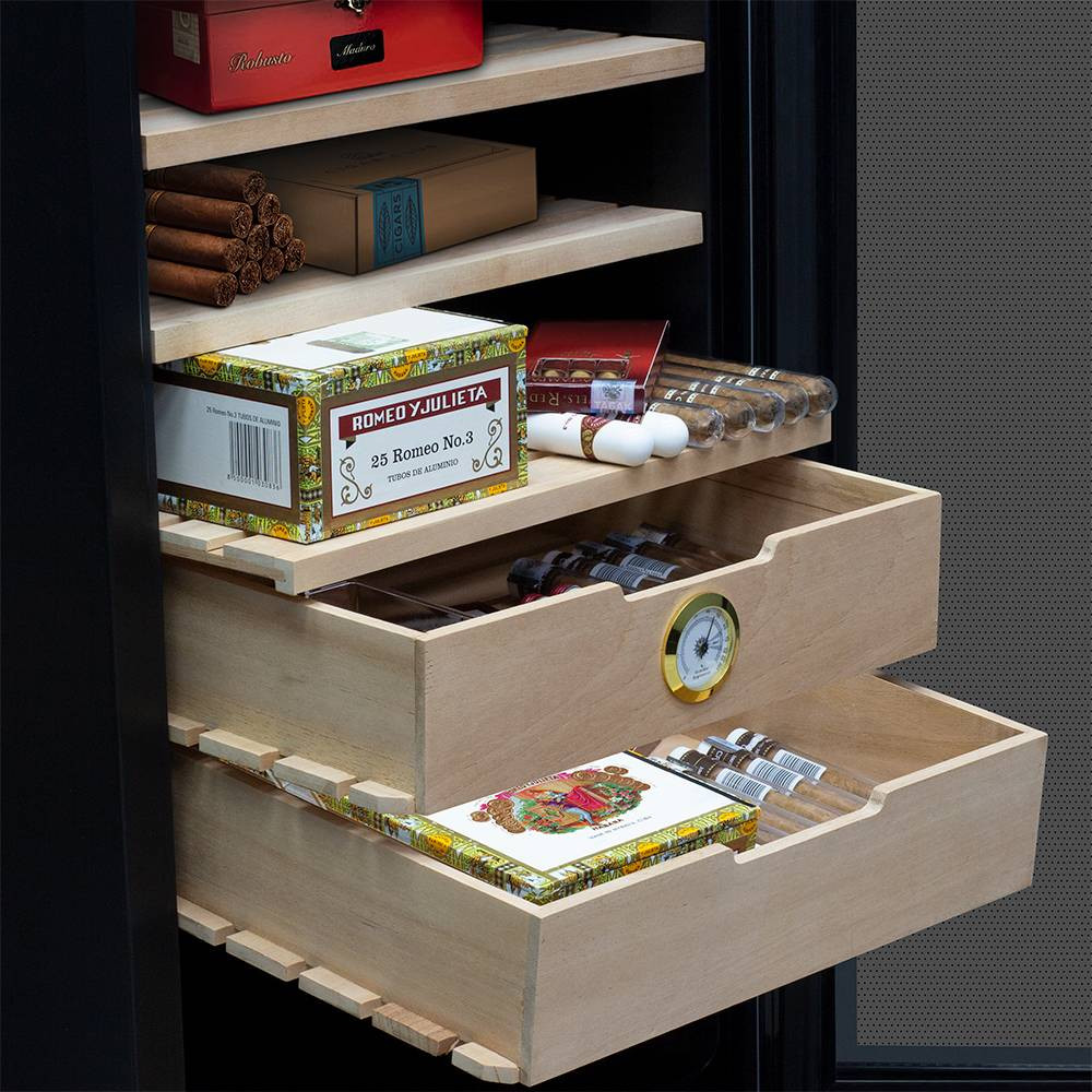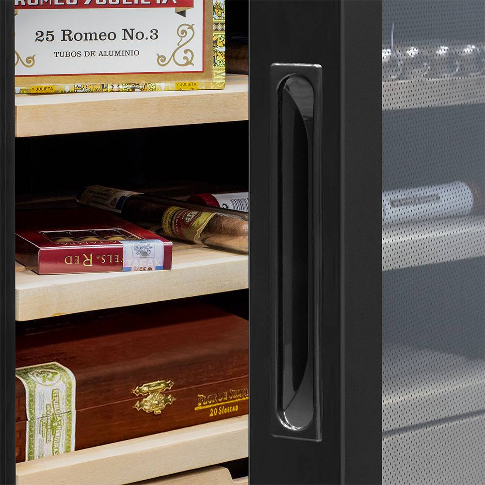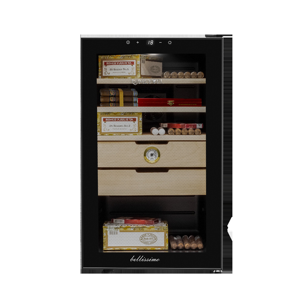 В ящике хьюмидора Meyvel MC-70BT встроен гигрометр, с помощью которого удобно отслеживать уровень влажности. Панель управления с электронным дисплеем позволит настроить необходимую температуру в диапазоне от +10C° до +18C°, включить или отключить внутреннее освещение. Уровень шума не превышает 41дБ.