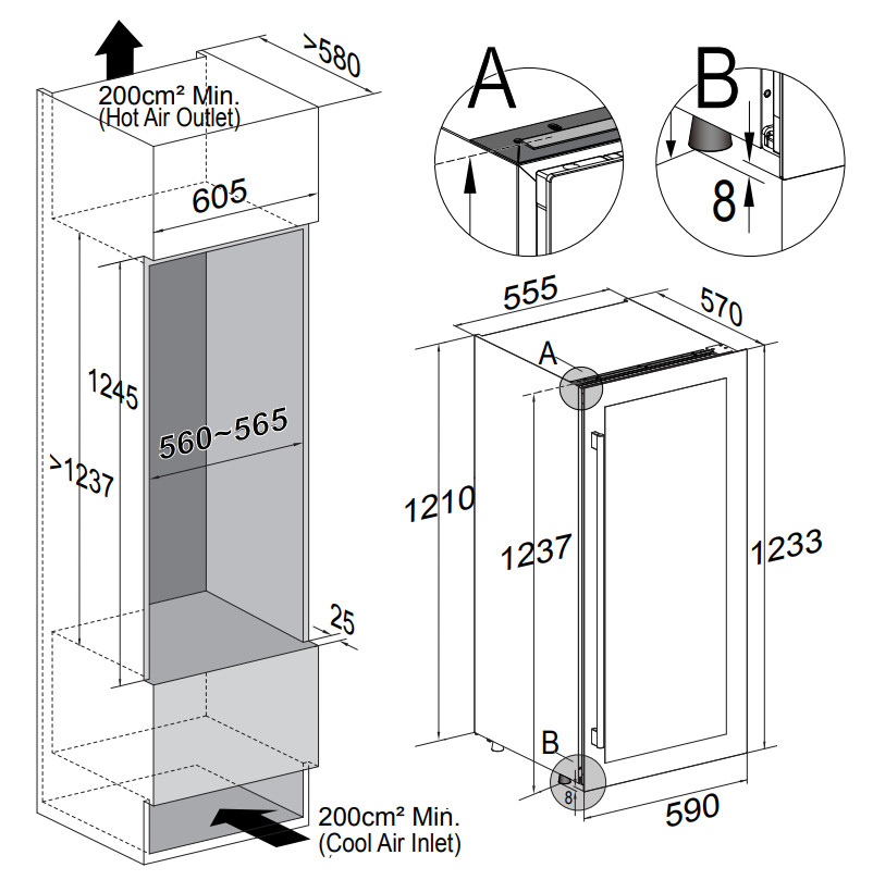 Благодаря стандартным размерам винный шкаф легко интегрируется в любые кухонные колонны.