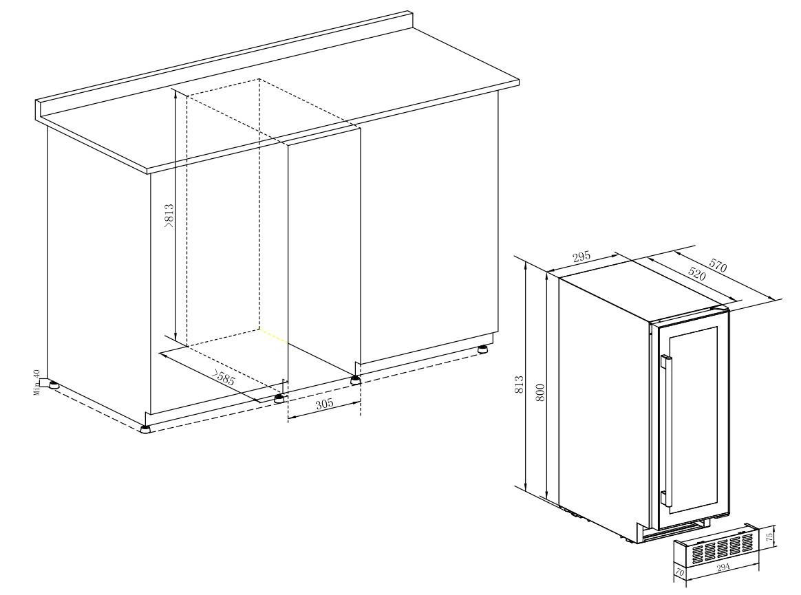 Размеры ниши (ШхГхВ): 305х585х815 мм