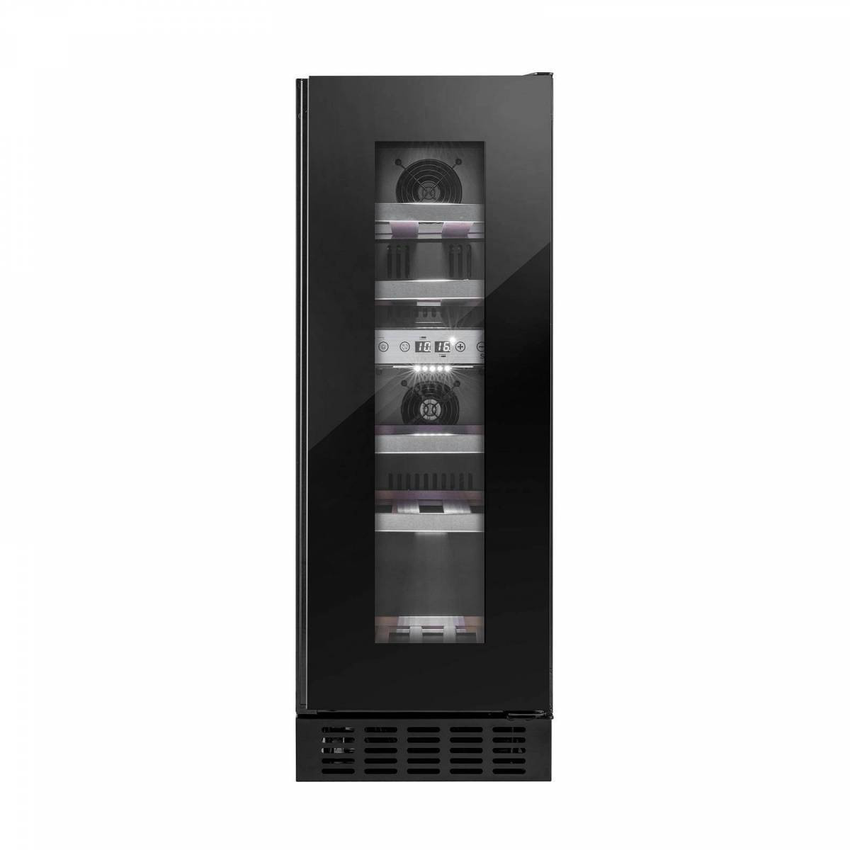 Стильный дизайн с черным стеклянным фасадом со встроенной ручкой, выдвижными буковыми полками и белым внутренним светодиодным освещением. С помощью сенсорной панели и цифрового дисплея вы получаете полный контроль над температурой и освещением.