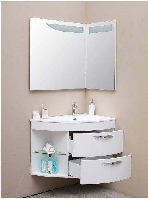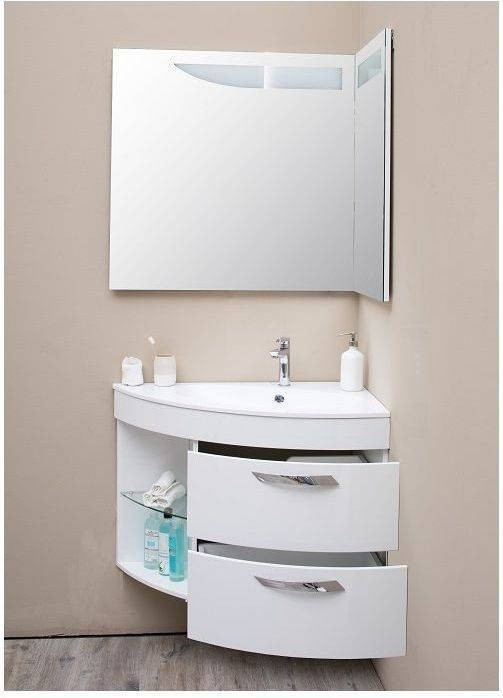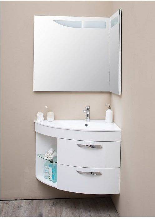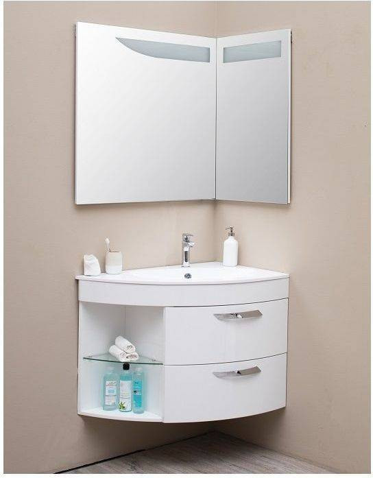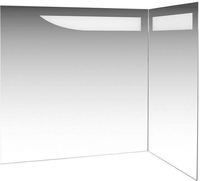Зеркало для ванной комнаты De Aqua Трио Люкс 90 R (цвет - белый) как полуоткрытая книга, снабженная лаконичной подсветкой, дополнительно к которой можно приобрести подогрев зеркала. Благодаря расположению зеркал, пространство ванной комнаты словно расширяется. Для самых важных умывальных принадлежностей предусмотрены удобные полочки на зеркале - они внедрены в угол, образованный зеркальными полотнами.