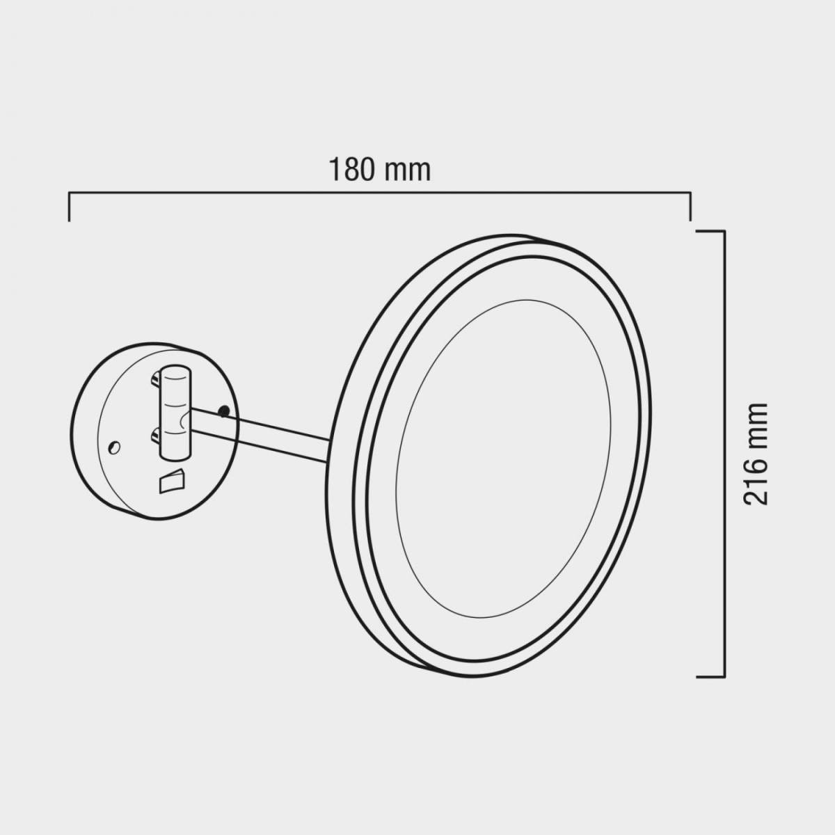 Зеркало диаметром 216 мм имеет широкий диапазон вращения и поворотный выносной кронштейн длиной 180 мм, вся конструкция выполнена из хромированной латуни.