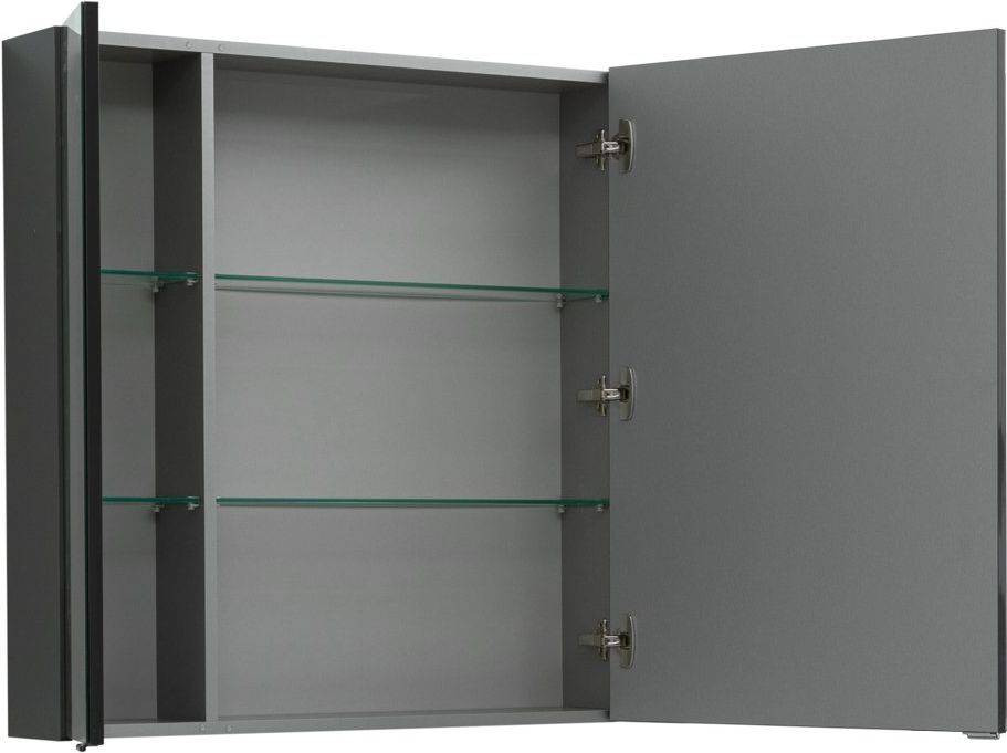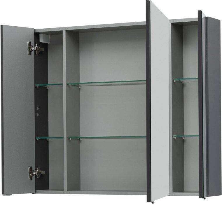 Настенное зеркало-шкаф в ванную комнату Акванет Алвита шириной 100 см в цвете "серый антрацит" станет не только необходимым объектом для ежедневных гигиенических процедур, но и важным эстетическим элементом, задающим общий тон помещению. Зеркало-шкаф придаст интерьеру ванной комнаты нотку особого очарования и уникальности. Зеркало, являющееся фасадом шкафчика с тремя отделениями за распашными зеркальными дверками, создает дополнительное пространство для хранения косметических средств, кроме того, всё необходимое при умывании теперь будет под рукой. При необходимости можно заказать экономичный светильник, который устанавливается над зеркалом и создает мягкое и направленное освещение. Невысокая цена в сочетании с превосходным качеством и функциональностью этой стильной детали ванной комнаты делают зеркало "Алвита" удачной находкой для современного человека с хорошим вкусом.